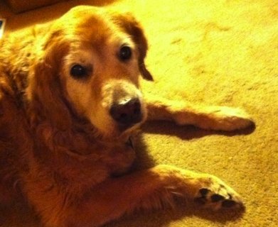 Jenna, our beloved Golden Retriever, after valiently battling a slow-growing brain tumor for 14 months, finally succumbed on Thursday, August 18, 2012. At age 15, the tumor ruptured a few days earlier. Sweet and loving companion to the end, it was only in her last 48 hours that she became completely immobile and disoriented, and ultimately, just ... tired. It was her time, much as it broke our hearts.